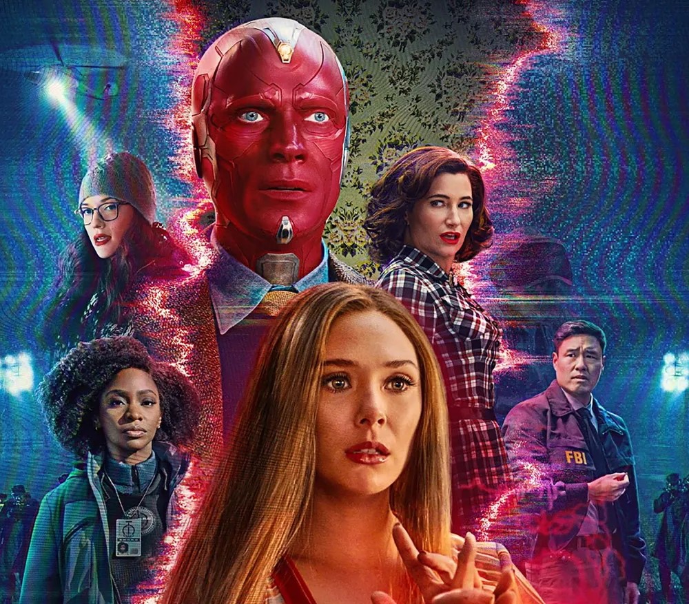 **‘완다비전(WandaVision, 2021)’**은 마블 시네마틱 유니버스(MCU) 최초의 드라마 시리즈로, ‘어벤져스: 엔드게임’ 이후 완다 막시모프(스칼렛 위치)와 비전의 이야기를 중심으로 전개됩니다. 1950년대 시트콤 스타일로 시작해 점점 현실과 환상이 충돌하는 독창적인 연출을 보여주며, 완다의 내면 세계와 MCU의 새로운 가능성을 탐구하는 작품입니다.